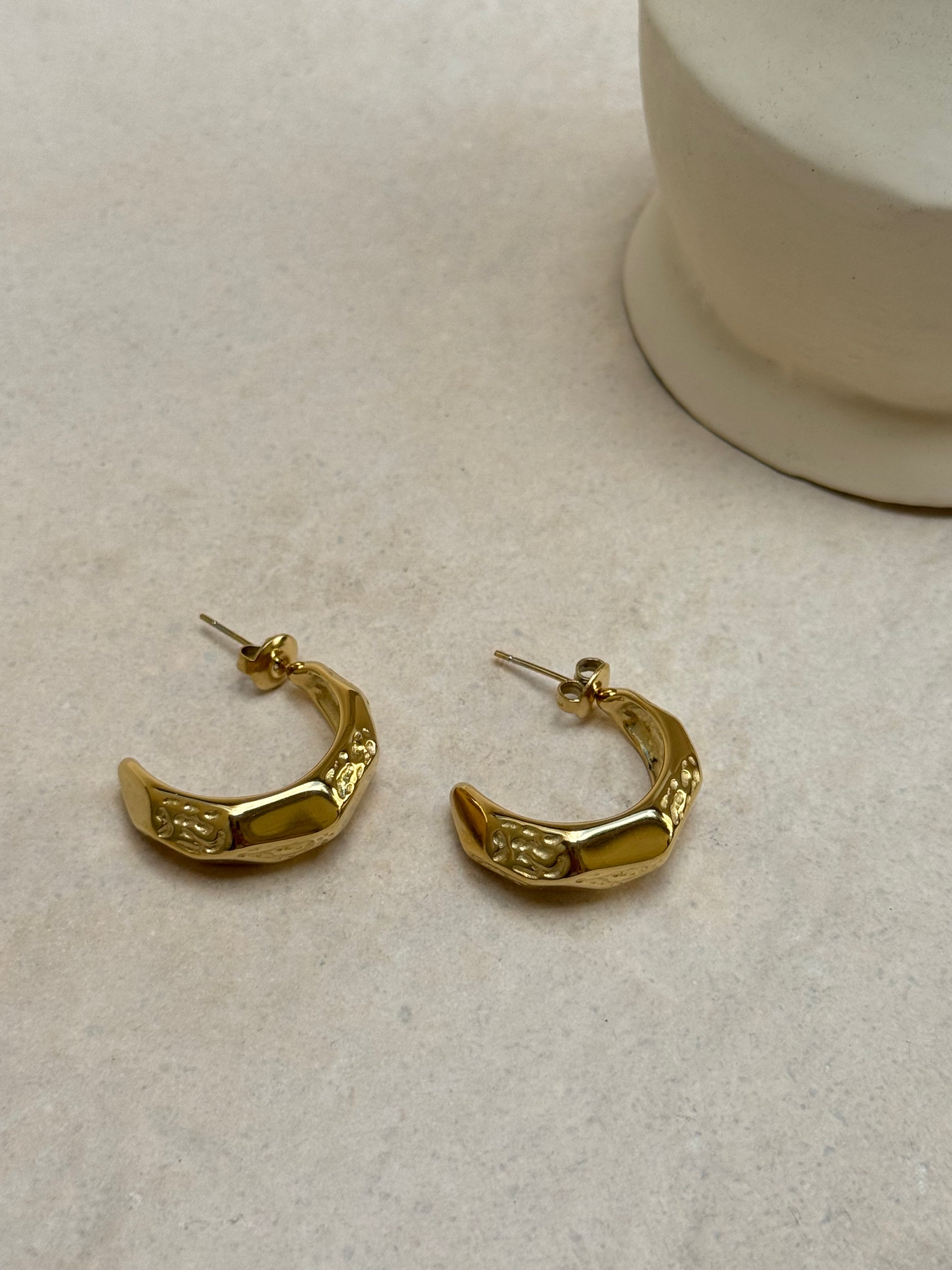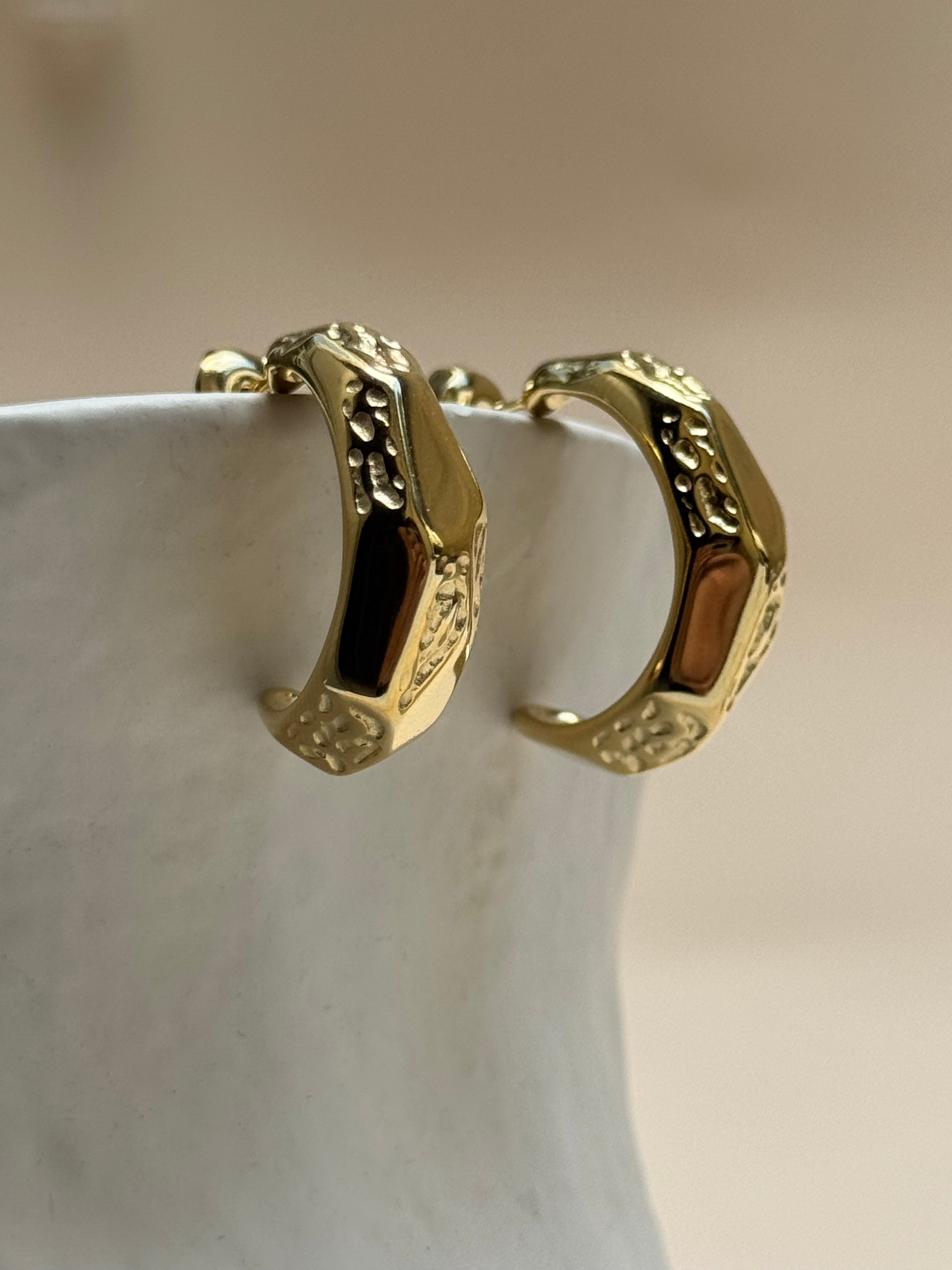 Détails : Créoles de taille moyenne avec facettes lisses et martelées