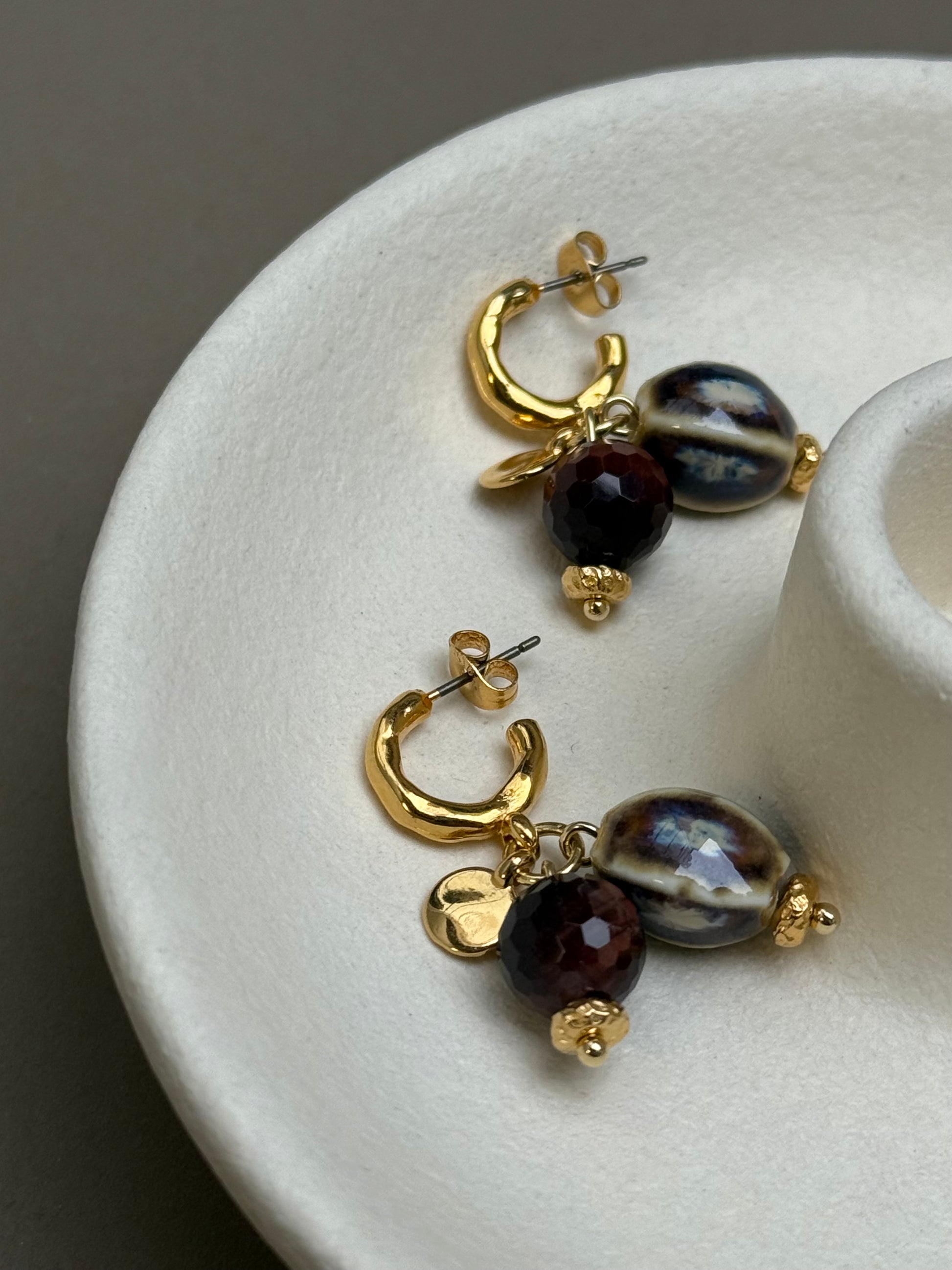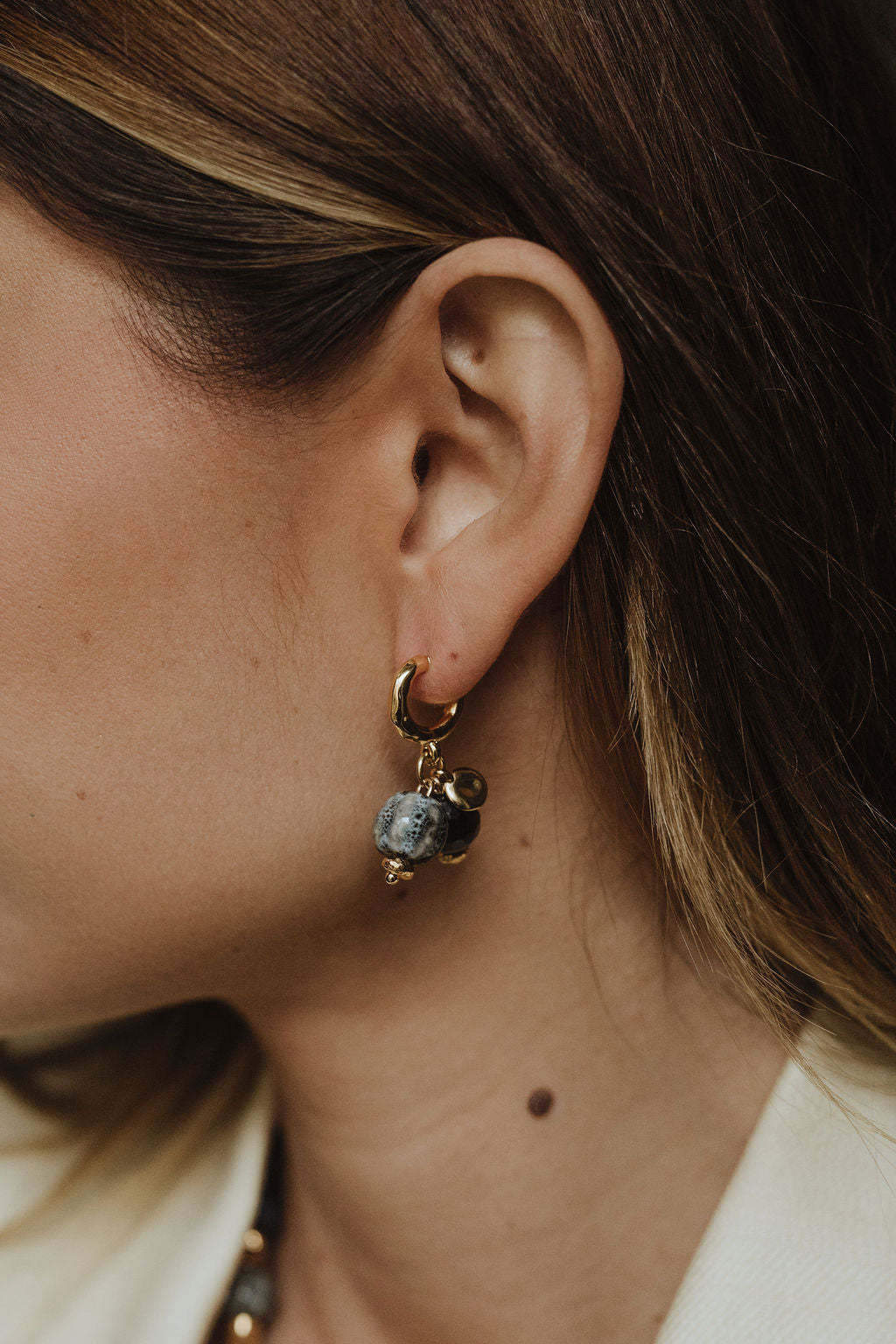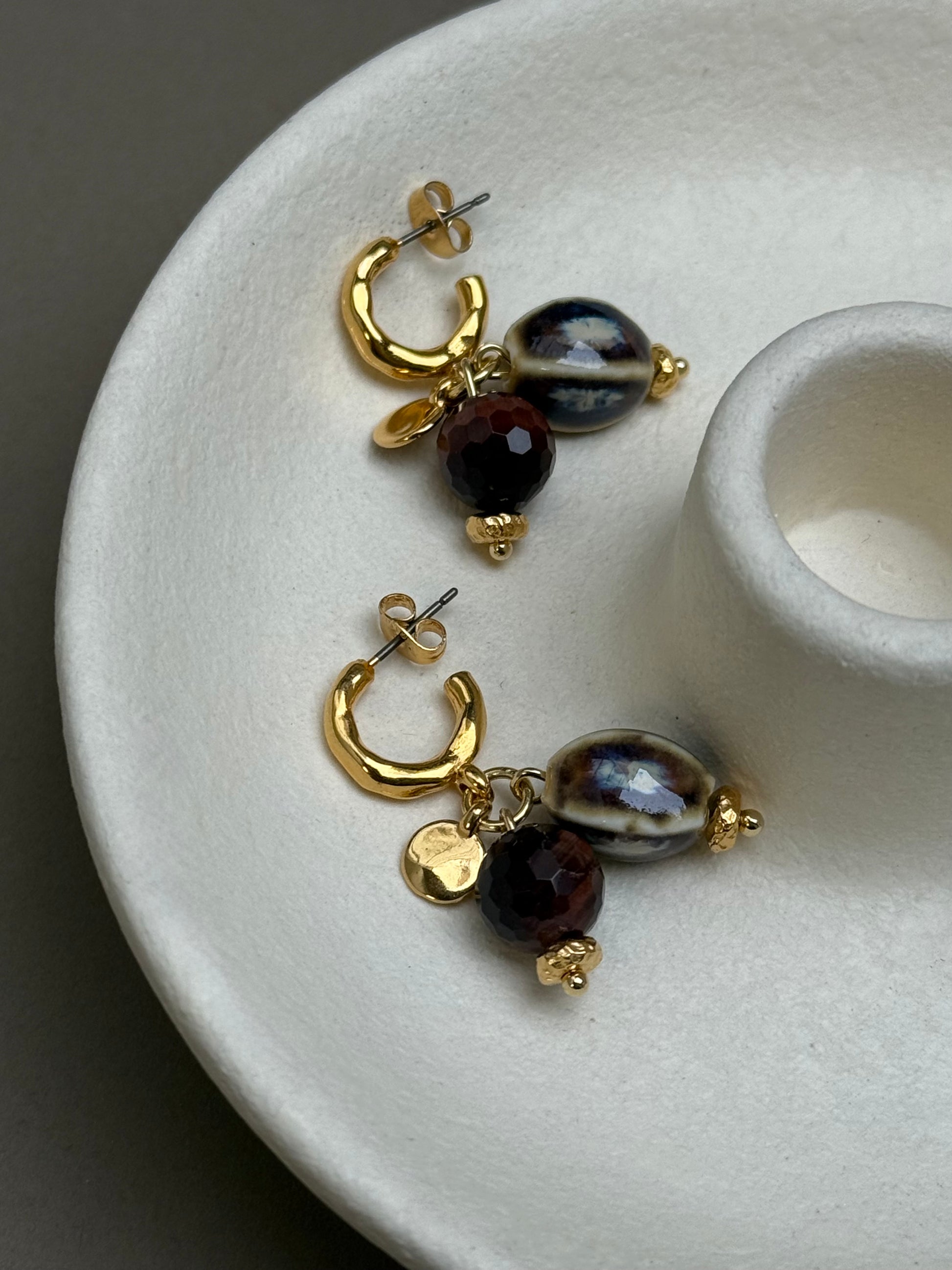 Détails : Mini créoles composées céramique, pierres naturelles.