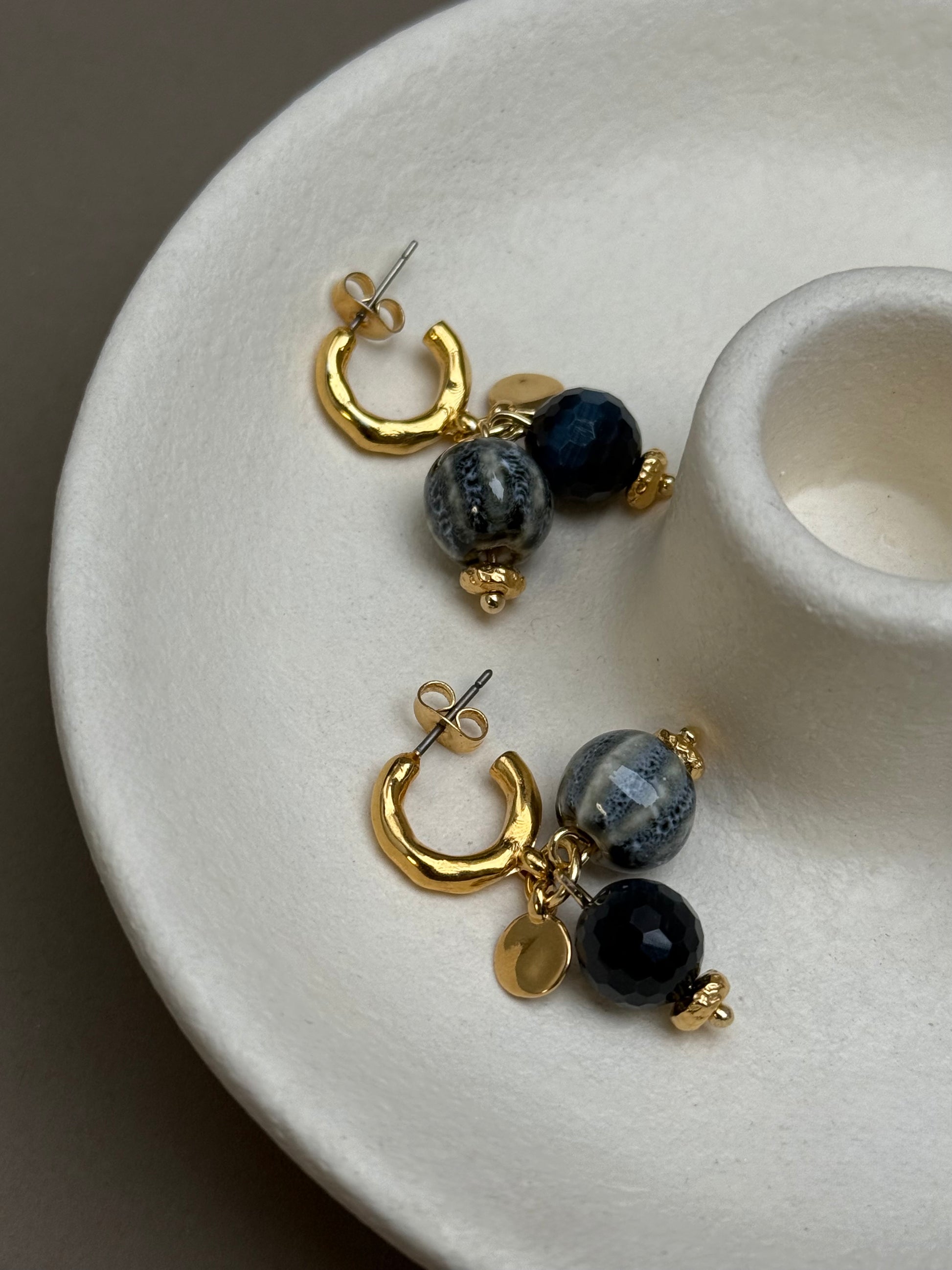 Détails : Mini créoles composées de pierres naturelles.