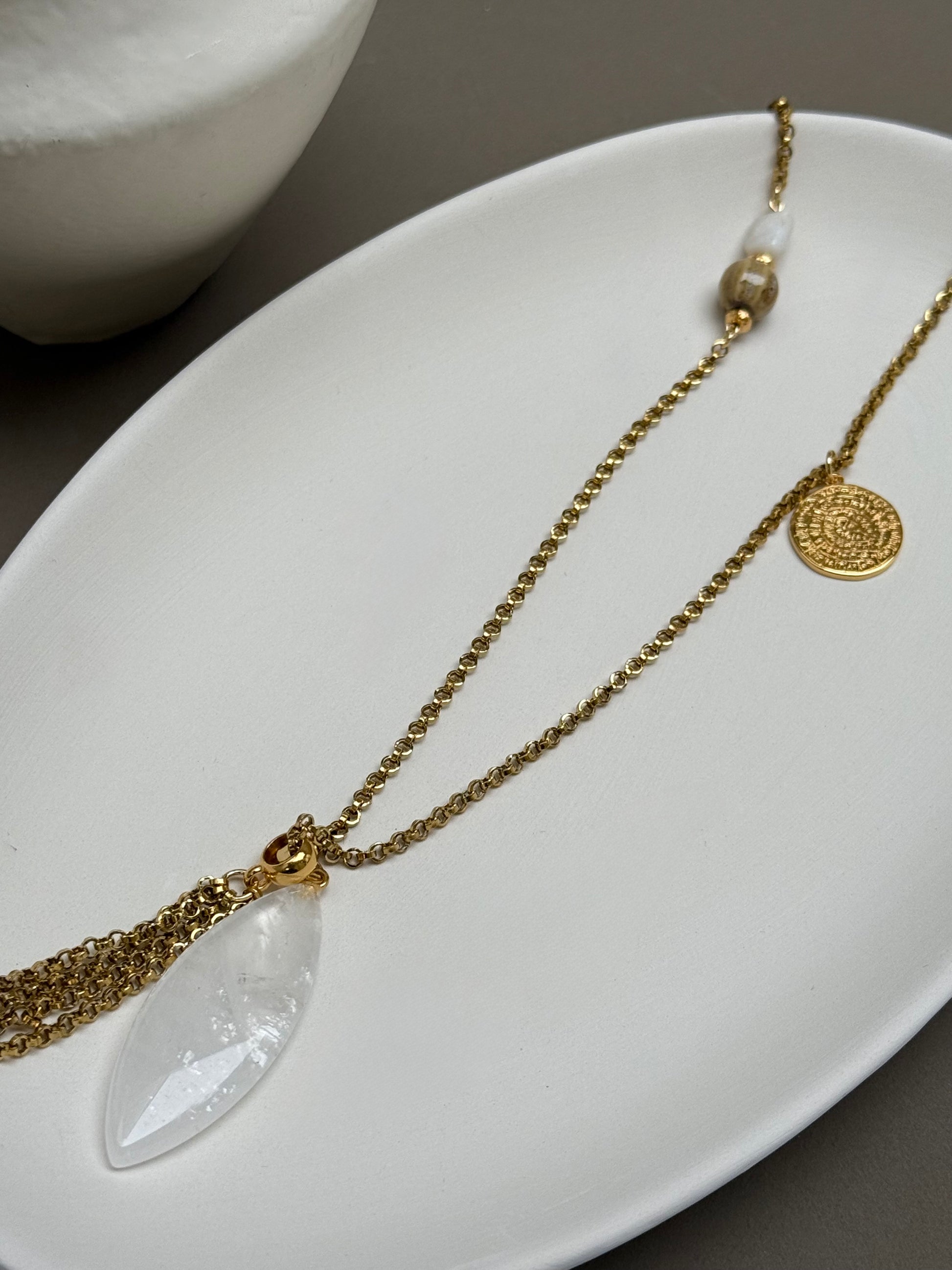 Un sautoir raffiné et fluide, parfait pour apporter du mouvement et de l’élégance à votre style.